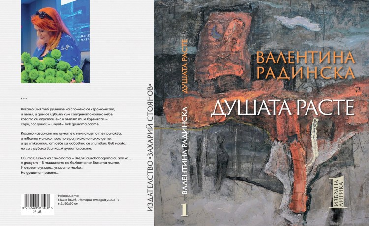Новият том с избрани стихове „ДУШАТА РАСТЕ“ на поетесата ВАЛЕНТИНА РАДИНСКА може да бъде купен във веригите на Helikon, Верига Книжарници „BookPo!nt“ и store.bg, както и в книжарница „Тракия“ на ул. „Стефан Караджа“.