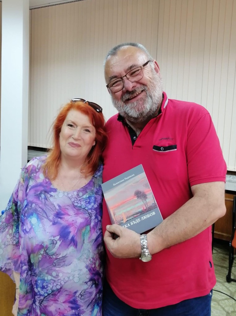 Думи на ВАЛЕНТИНА РАДИНСКА: „Приятели, имах чудесна вечер в Севлиево. Въпреки нечовешката горещина, намериха се достатъчно смели хора, които да дойдат в прохладната зала на Градската библиотека. Благодаря на Ива Коркинова за изключително интересния начин, по който представи моите стихове, свързвайки ги с текстове от книгата ми „Користни записки“. Това даде начало на една наистина интересна вечер, в която се получи разговор за много неща, не само за поезията…